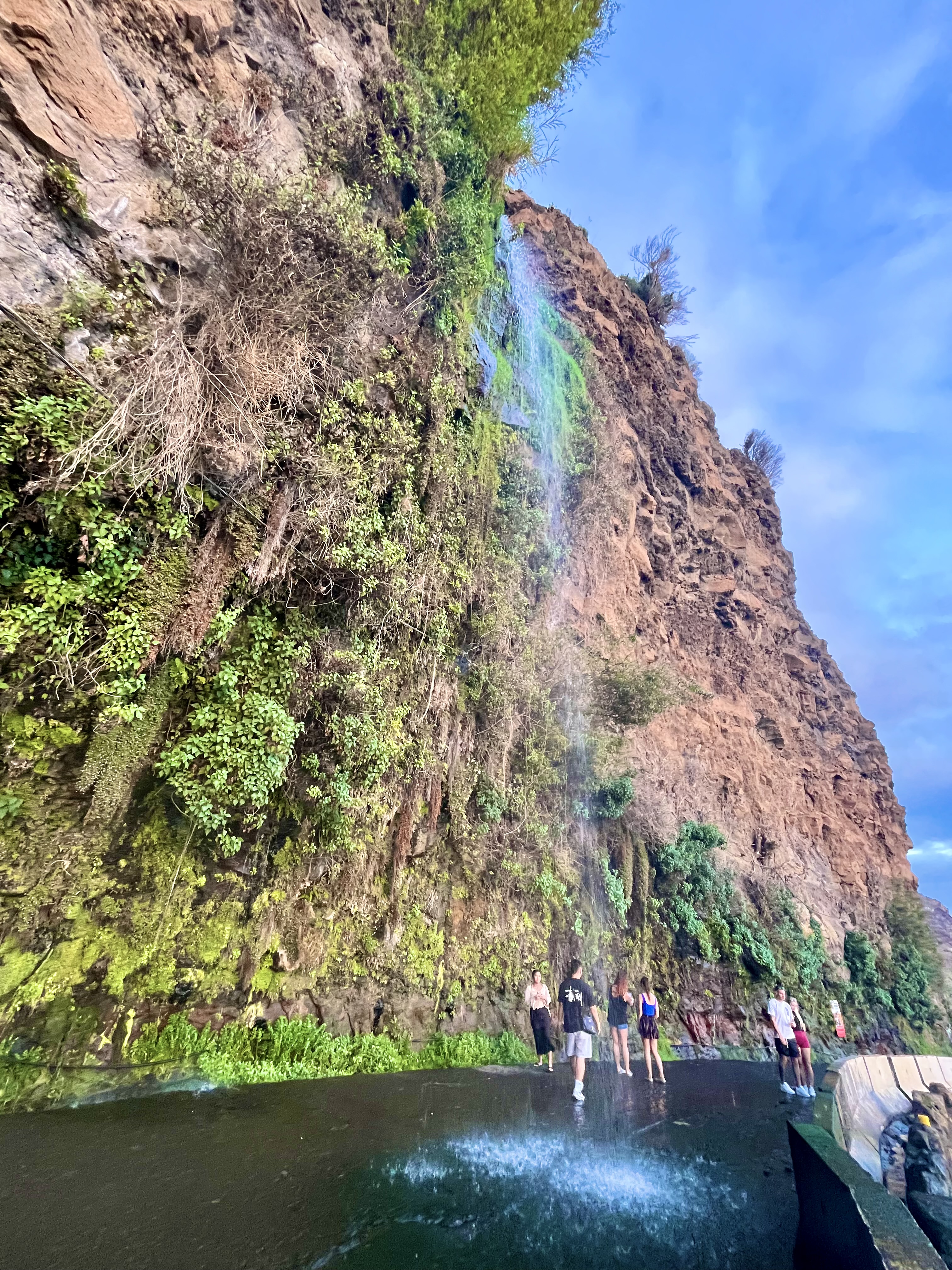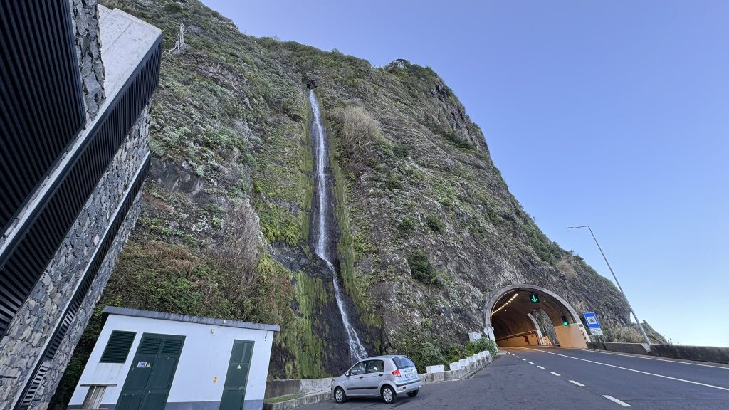 Este pueblo destaca por unas cuevas o grutas subterráneas socavadas por la lava 400.000 mil años atrás, pero lamentablemente desde 2020 están cerradas al público, por lo que no pudimos descubrirlas. Eso sí, encontramos la primera cascada de nuestro viaje, pero sin duda no la última, ya que si hay algo que destaca en Madeira son sus cascadas. Esta en concreto era la cascada Água d’alto.