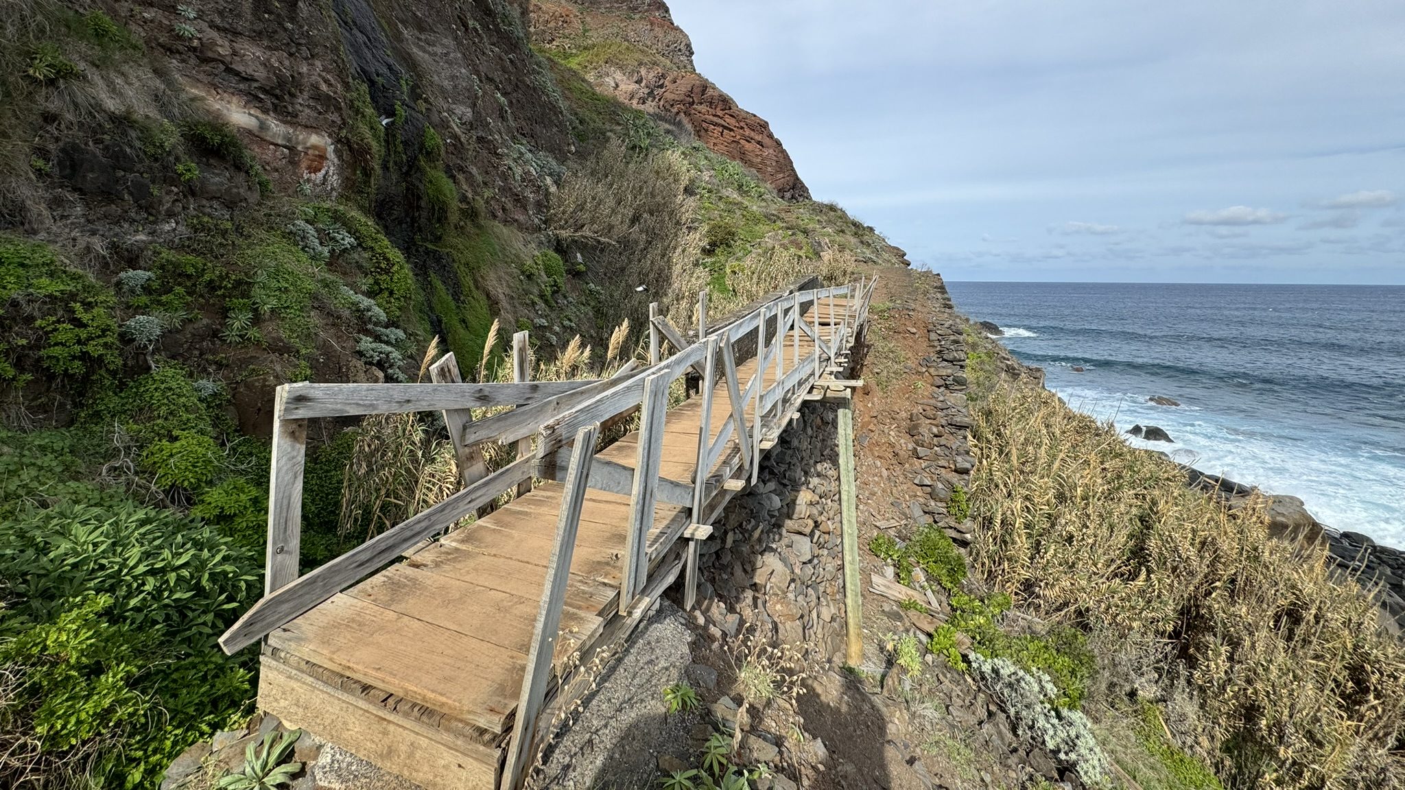 Nos movemos hasta la parte más noreste de la isla y comenzamos visitando el pueblo de San Jorge, concretamente la ruinas de San Jorge situadas pegadas al mar donde antiguamente se asentaba unos molinos de caña de azúcar. Decidimos explorar el antiguo camino que llevaba hasta el embarcadero atravesando unos puentes bastante inestables de madera y unos caminos algo peligrosos, ya que al situarse debajo de la ladera pueden desprenderse las rocas.