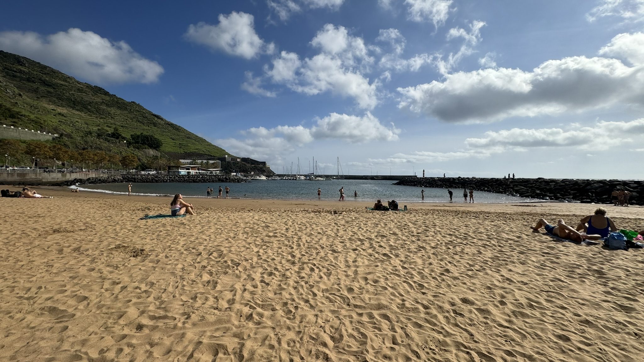 Tras una buena ruta a pie nos apetecía darnos un chapuzón asique proseguimos hasta la playa de machico, no muy alejada del punto anterior, donde disfrutamos de un baño en la playa de arena artificial.