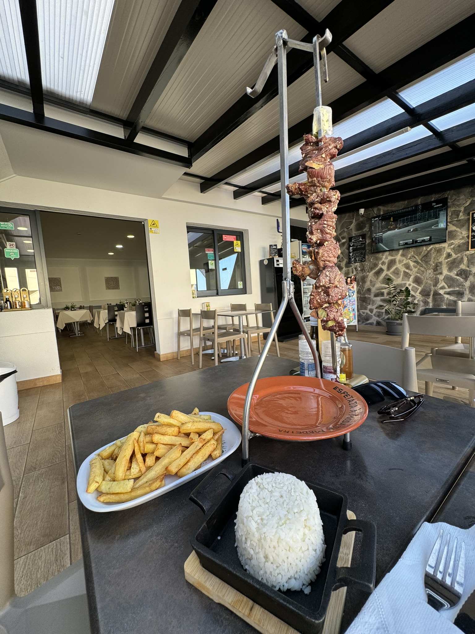 Este plato consiste en brochetas de carne de vaca marinada en ajo, sal y laurel, que se asan a la parrilla sobre brasas de leña de laurel. Esta técnica de asado sobre brasas de laurel le da a la carne un sabor único y delicioso.