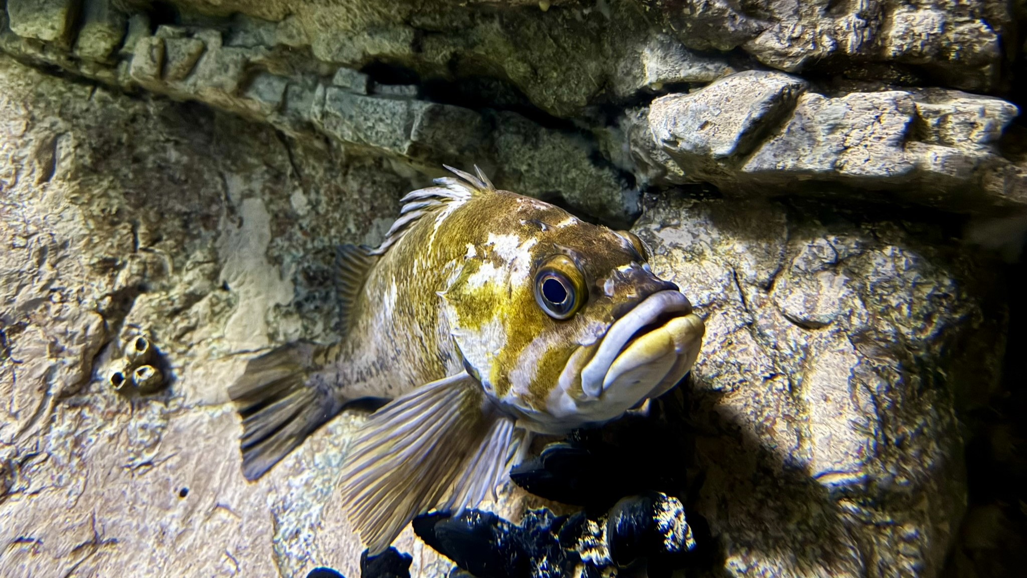 Especies destacadas: Bacalao, pulpo, tiburones como el tiburón solitario de arrecife de coral, peces de diversas especies.