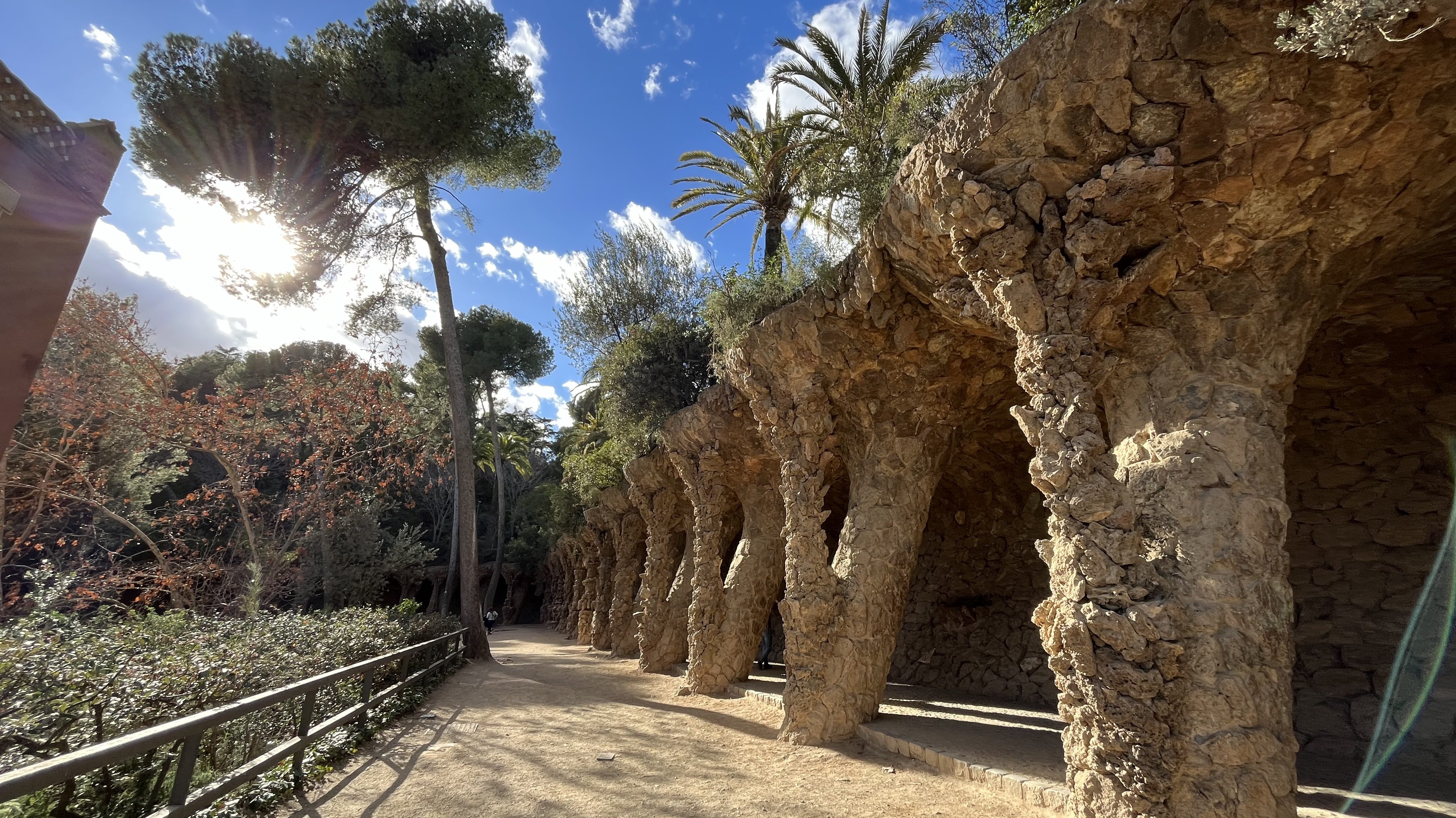 Este espacio único combina elementos naturales y arquitectónicos de una manera orgánica y caprichosa. Desde las terrazas del parque se pueden admirar vistas panorámicas de Barcelona, mientras que las esculturas, bancos ondulados y el famoso lagarto de Gaudí hacen que cada rincón sea una obra de arte.