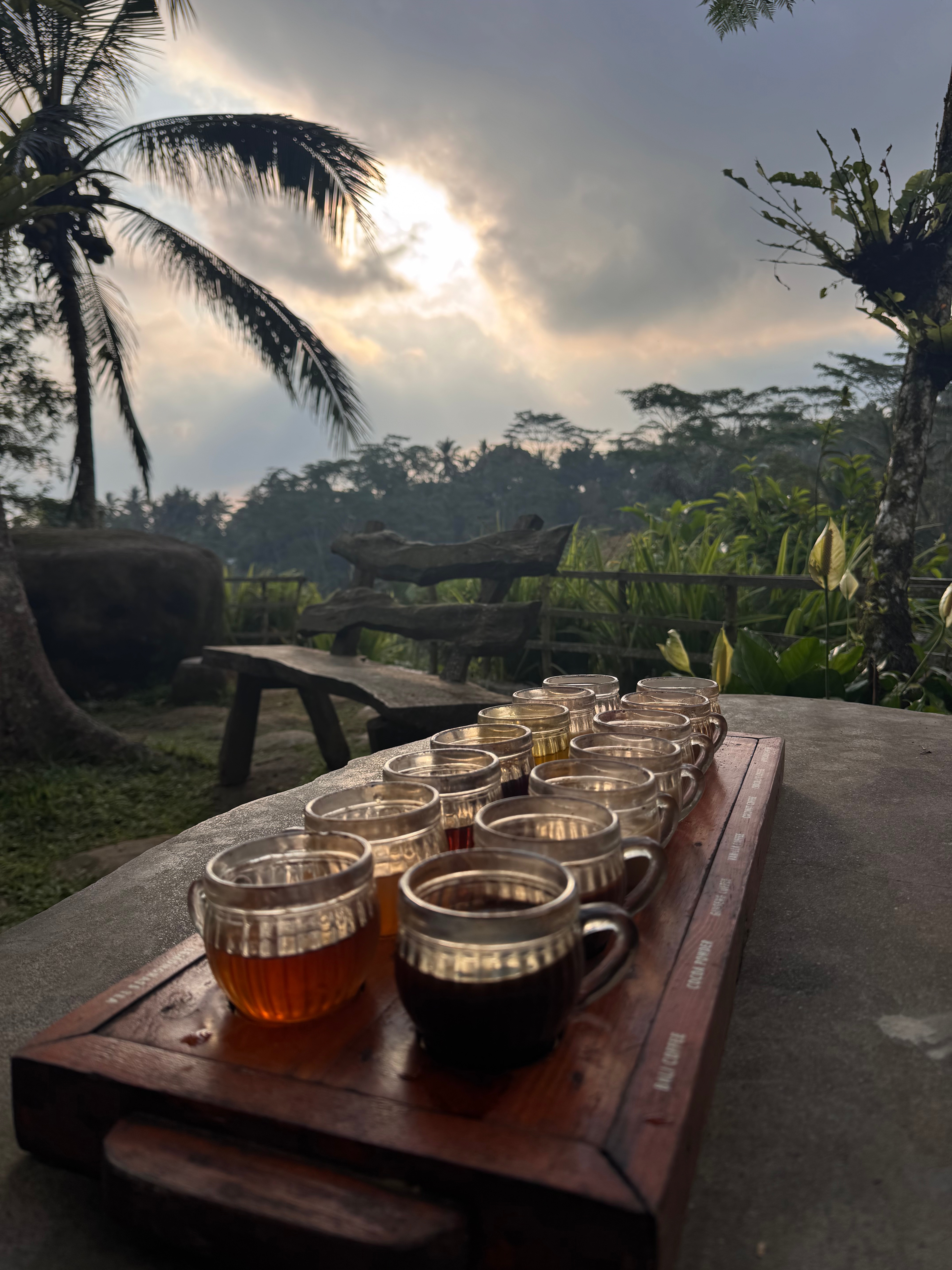 Cerca de Ubud (por ejemplo, zona de Tegallalang, Bali Pulina, Satria Coffee, etc.) hay plantaciones que ofrecen recorridos, explicación del proceso de café, degustaciones gratuitas o de bajo costo, y la opción de probar el famoso café de Luwak – IDR100.000.