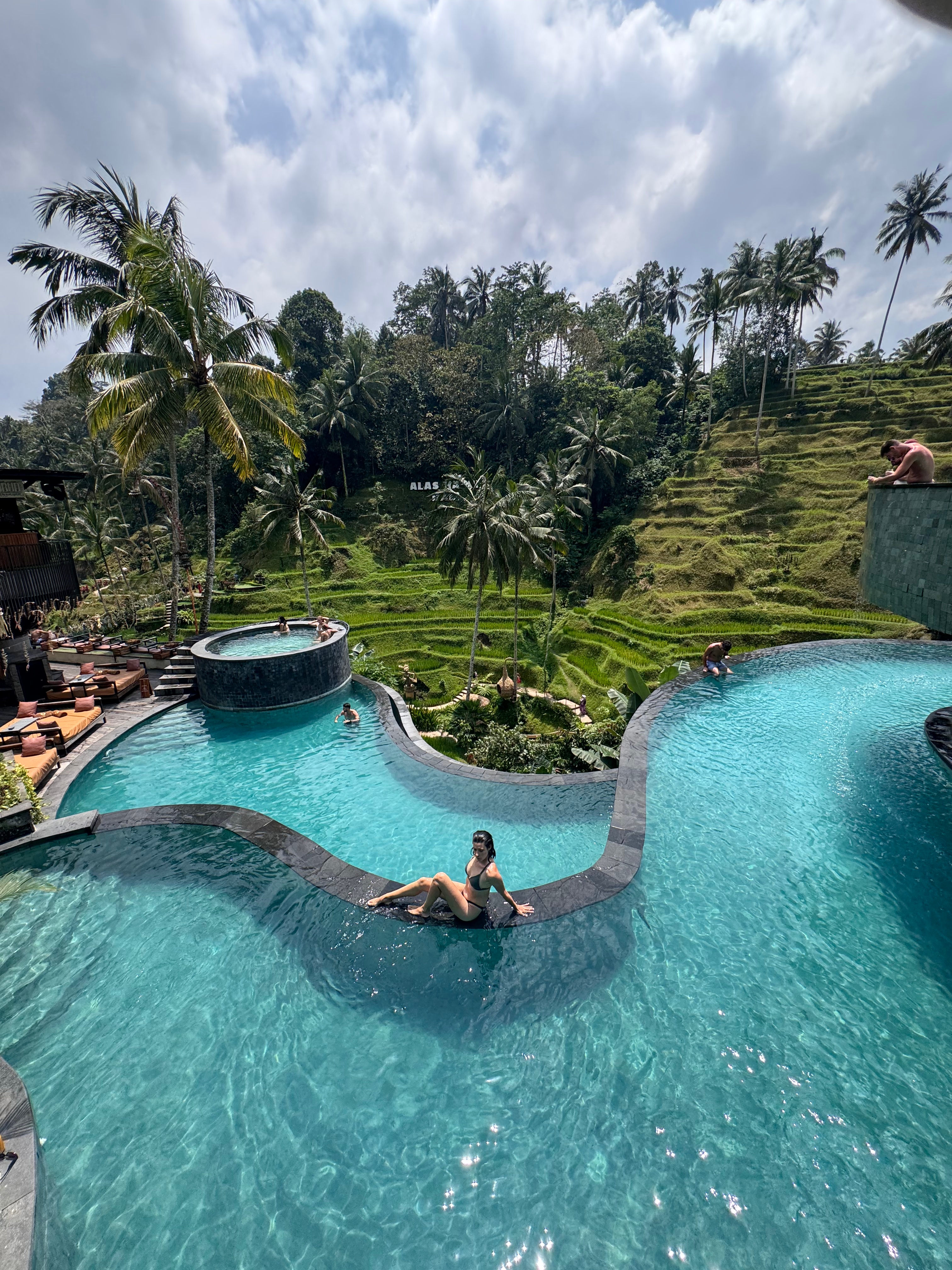 • En las afueras de Ubud, en zonas más tranquilas rodeadas de arrozales o selva: opción para quienes buscan calma, naturaleza, vistas, retiro espiritual. Villas con piscina privada, resorts de lujo, etc.