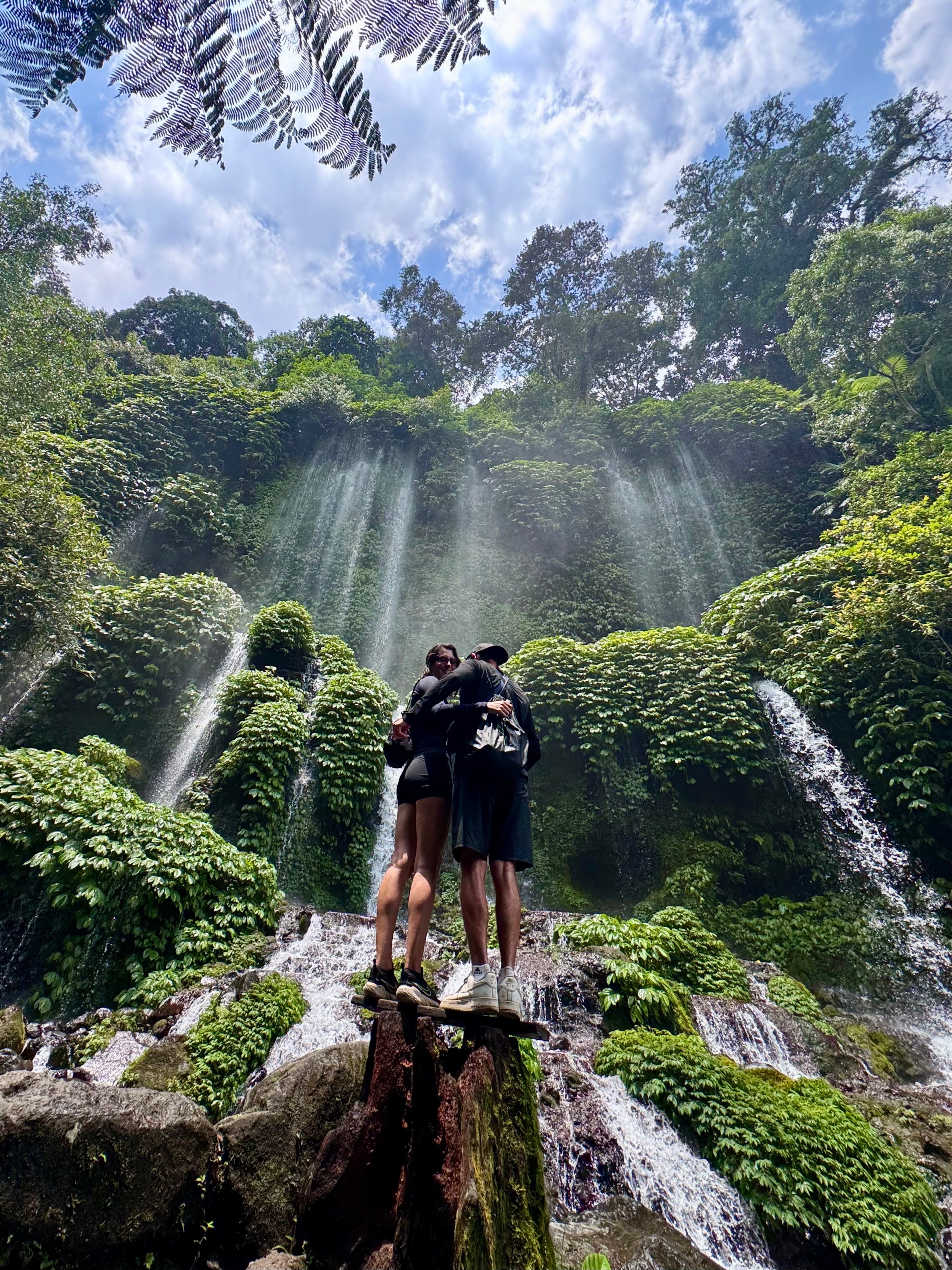 Nuestra intención era llegar hasta Tetebatu, pero el mal tiempo nos lo impidió. Aun así, hicimos una parada que se convirtió en uno de los mejores momentos del viaje: la cascada Benang Stokel.